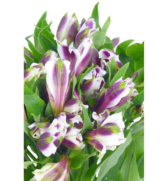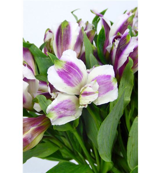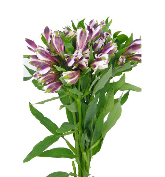 Alstroemeria de colombia en color morado. cada paquete se compone de diez tallos de 75 centímetros de medida, y cada tallo tiene de tres a diez flores.