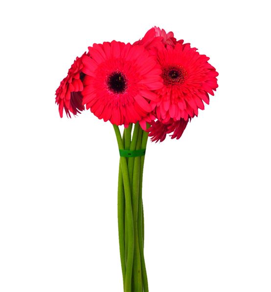 Gerbera varidad intense, de color fucsia y con el centro negro. se envían en paquetes de diez tallos de entre 50 y 60 cm de altura.