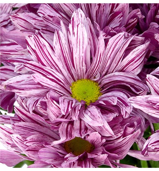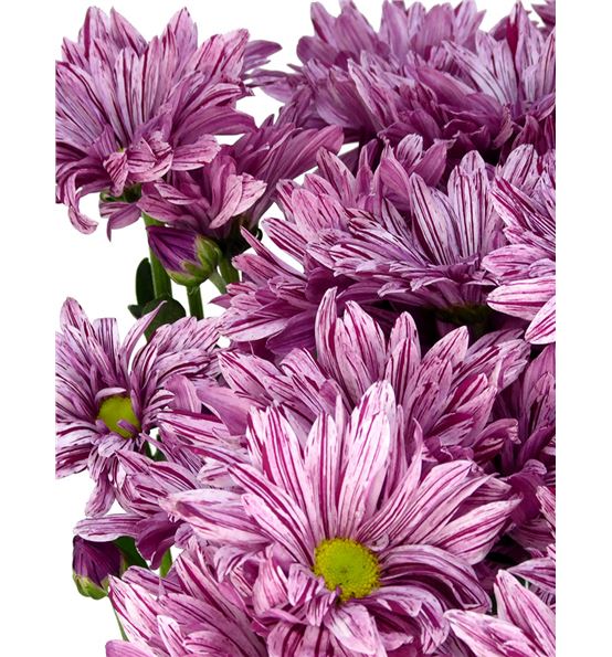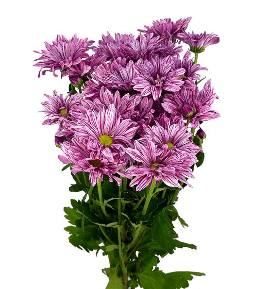Margarita varidad stellini es bicolor, se envasa en paquetes de cinco tallos de 70 cm de medida. cada tallo posee entre cinco y ocho flores apróximadamente.